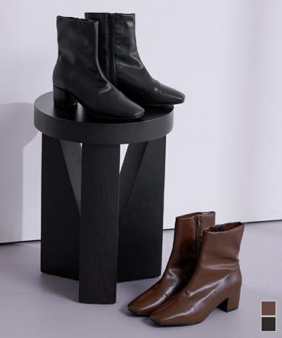 4.5cmチャンキーヒールスクエアトゥショートブーツ