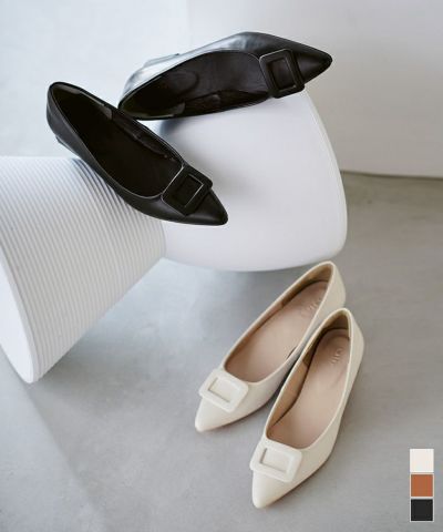ナロースクエアトゥフラットパンプス