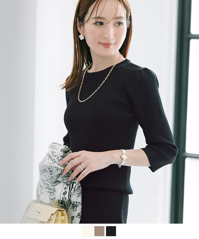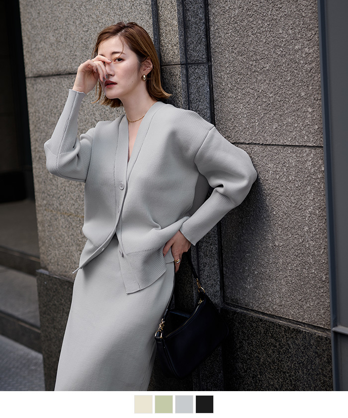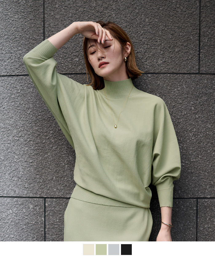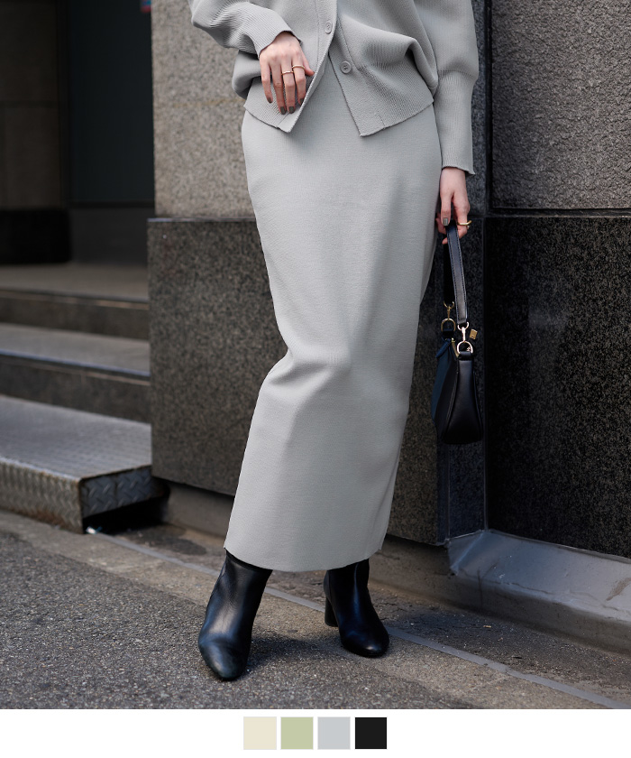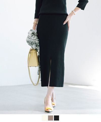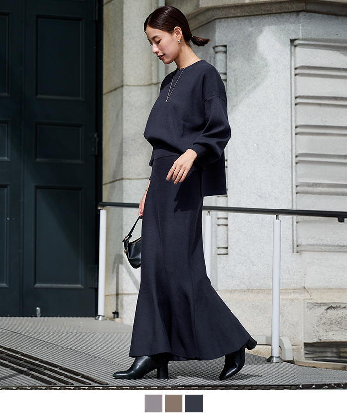 クルーネックトップス×マーメイドスカートニットセットアップ