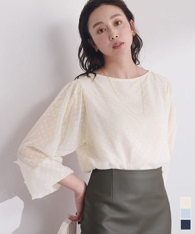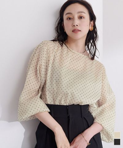 キャミソール付シアーフロッキードットブラウス【メール便可/100】