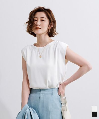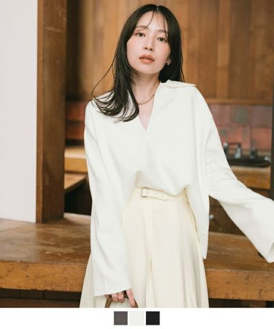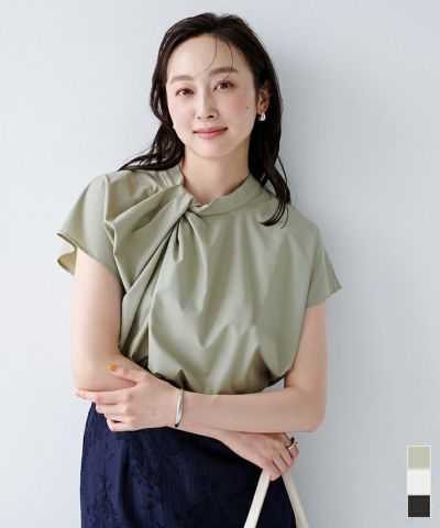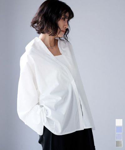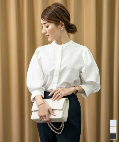 バンドカラーパフスリーブブラウス 【メール便可/100】