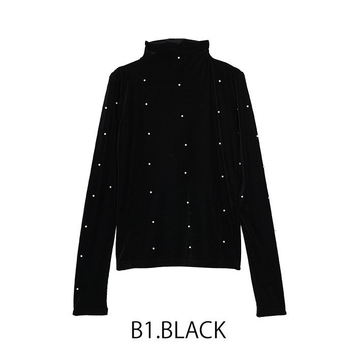 【メーカー完売につき再入荷なし】MICALLE MICALLE(ミカーレミカーレ)パール使いベロアタッチシアータートルカットソー