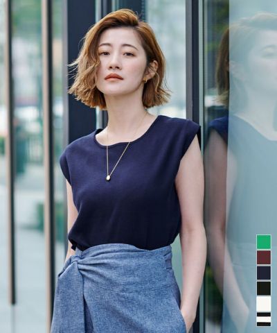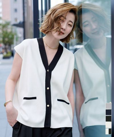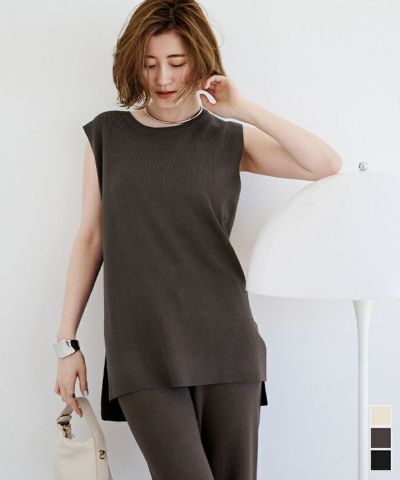 ラウンドネックサイドスリットノースリーブニット【メール便可/100】