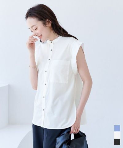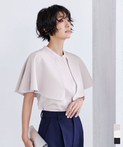 フレンチスリーブバンドカラーブラウス【メール便可/80】