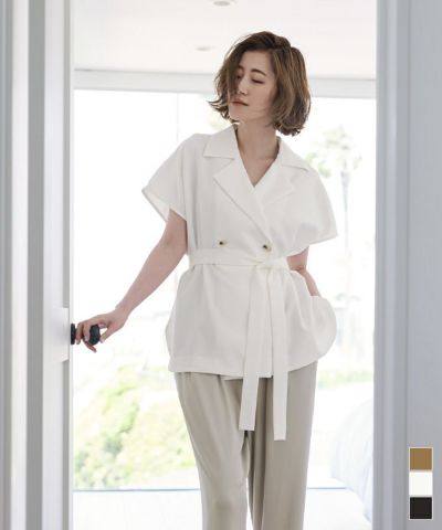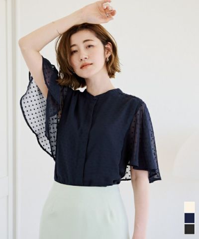 ダブルカフスフレンチスリーブブラウス【メール便可/80】