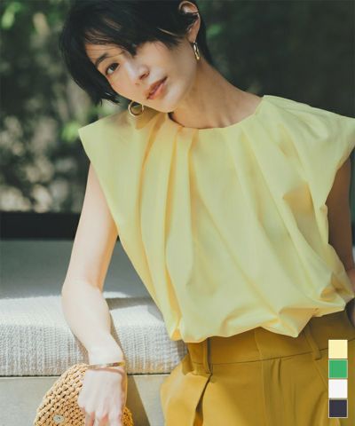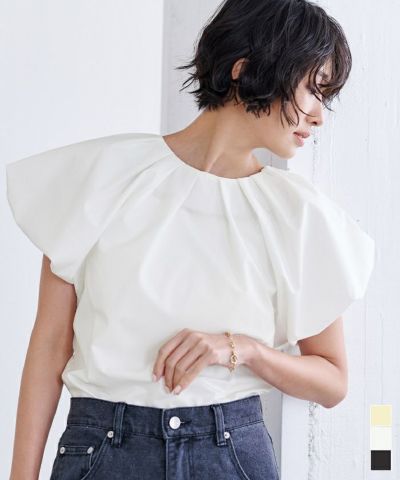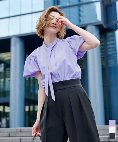 コットンブレンドギャザースリーブボウタイブラウス【メール便可/80】