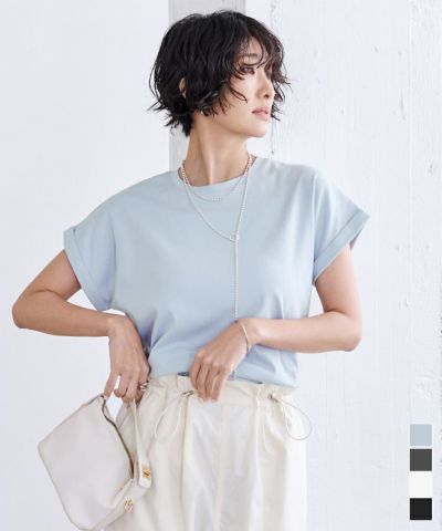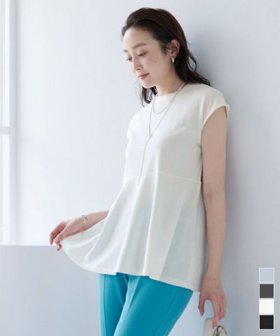 汗染み防止ペプラムフレンチスリーブTシャツ【メール便可/70】