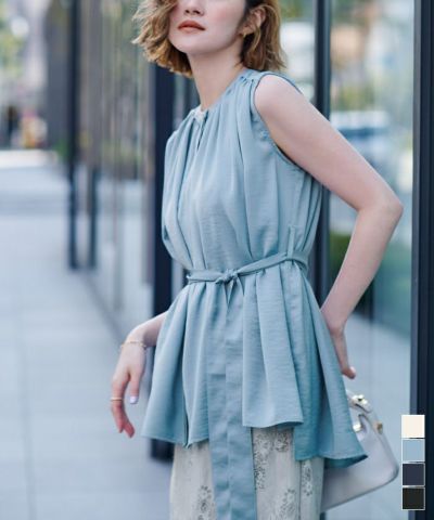 ベルト付きサテンギャザーブラウス【メール便可/100】
