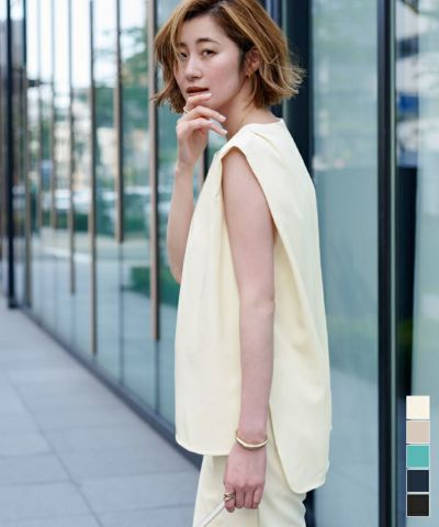Vネックスカラップタックスリーブトップス【メール便可/60】
